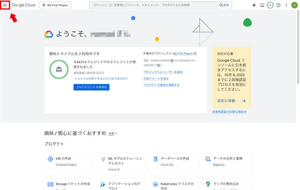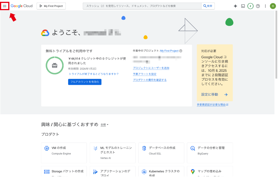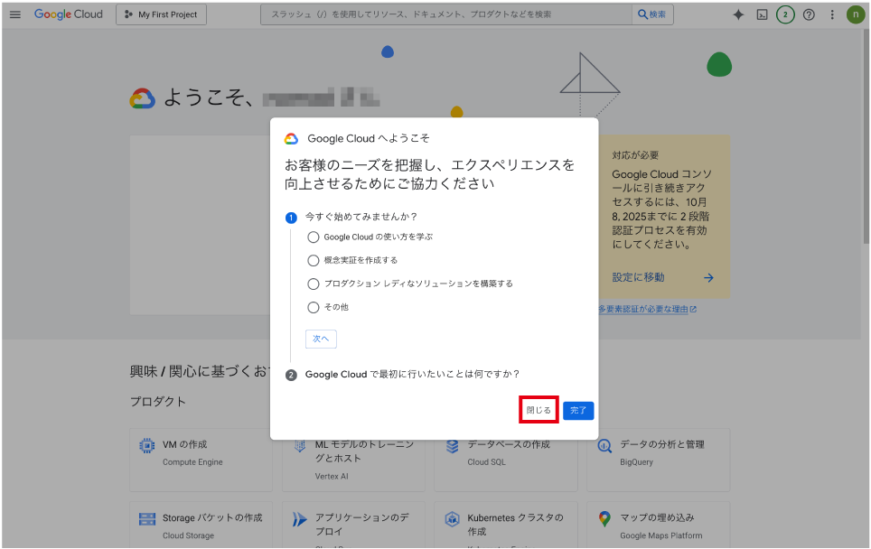 ※多要素認証(MFA)の案内が表示された場合は、案内に沿ってアカウントの2段階認証を有効にしてください。