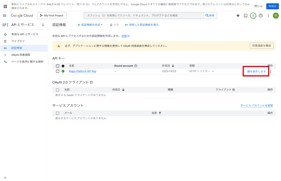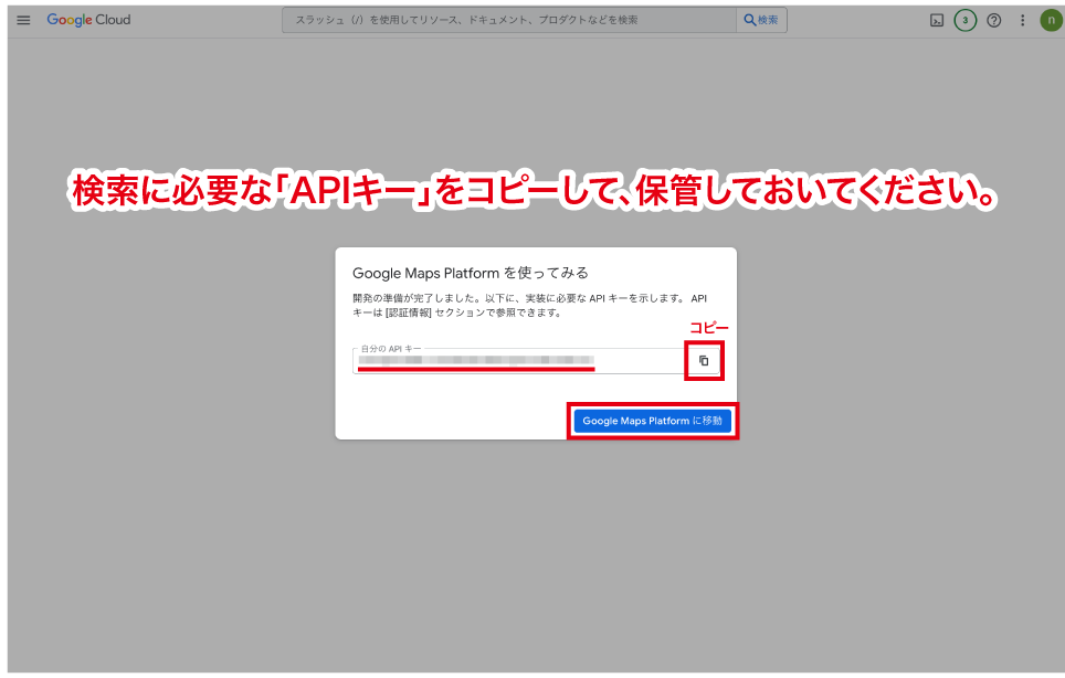 Search Proで「初回無料クーポン」を発行してください。APIキーの確認方法