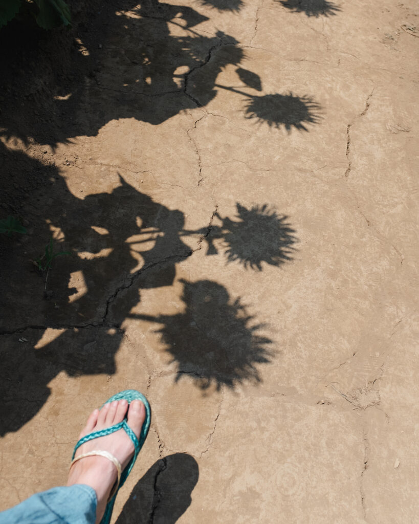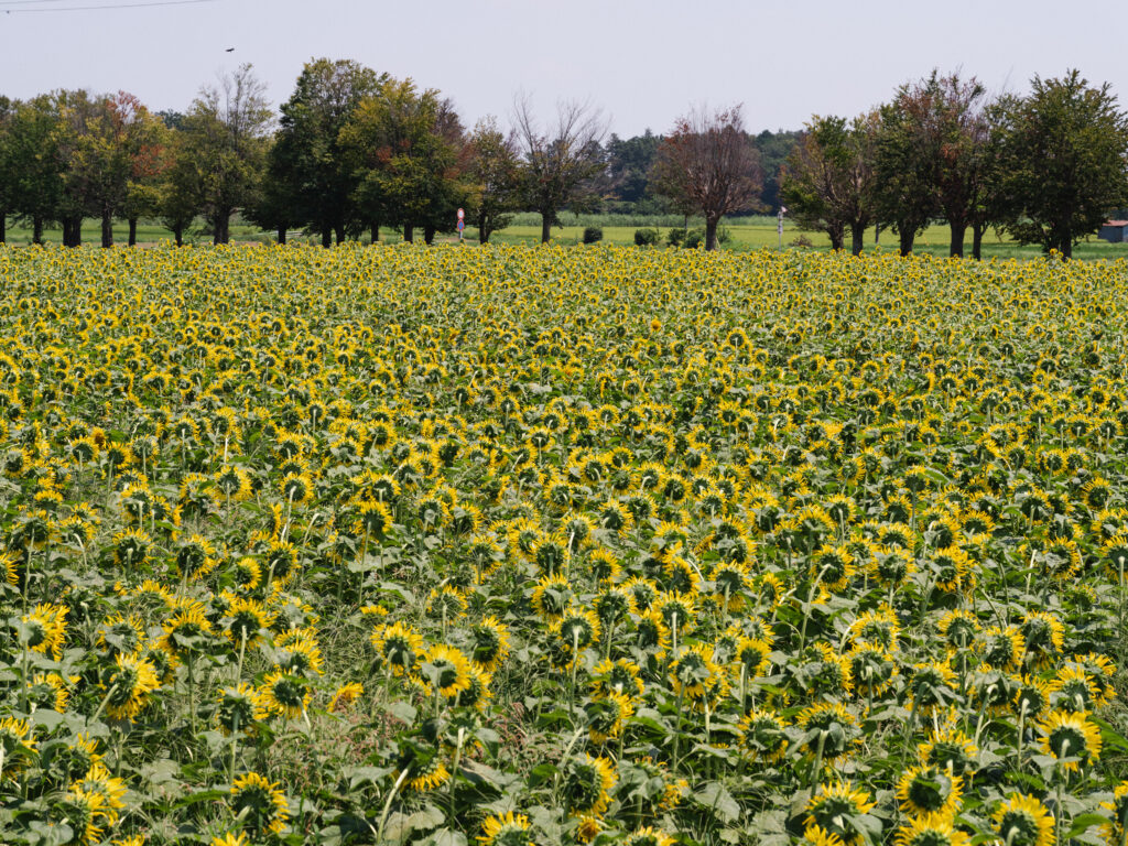 シャッターボタンを連打した夏の午後By UENO / 2025年8月14日 自宅で仕事をしているせいか、最近ちょっと体が弱くなってきたのかもしれない。この前、太陽が全開で燃えている真っ昼間に、ひまわりを見に行った。あまりの暑さに、めまいがして倒れそうになった…。妻は平気そうで、「写真撮って〜」と笑顔で言ってくる。こっちは写真どころではない。額から汗がしたたり落ち、全身からも汗がふきだしている。とにかく何も考えずに、カメラのシャッターボタンを連打した。まだ7月というのに、ひまわりにとっても今年の夏は暑いのか、ぐったりしている。10分で限界を感じて、「車に戻ろう」と妻に声をかけた。エアコン全開。もう外には出たくない…。それでも妻は「また見に行きたい」と言う。僕は「とりあえず、車の中でおにぎりを食べよう」と返した。もうこれからは、カンカン照りの真昼間にひまわりを見に行くのは、無理かもしれない。自宅で静かにパソコンに向かっているほうが、体にやさしい気がしてきた夏の午後だった。 モワ〜っと危険な暑さだった。ひまわりもしおれてるし。 元気なひまわり発見。 影とサンダルがいい。 ひまわりを後ろから。 自販機も黄色い。 こっち側のひまわりのほうがまだ元気そうだった。